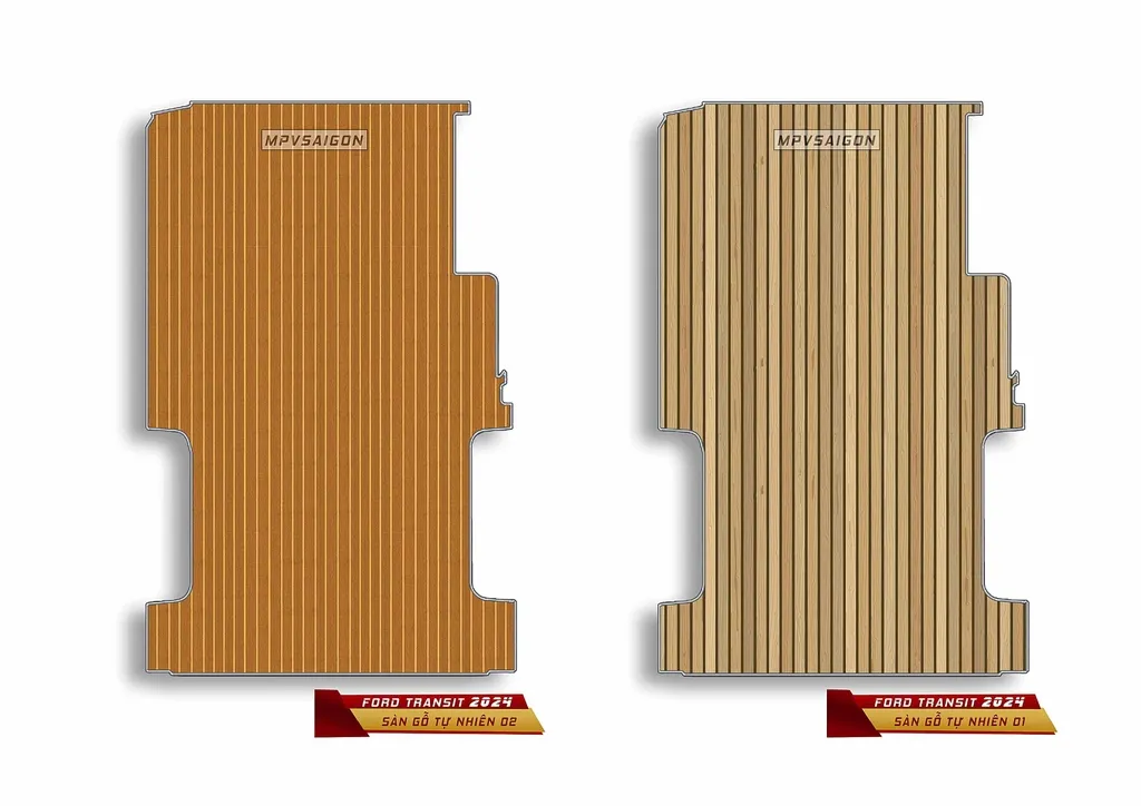 Hai mẫu sàn gỗ tự nhiên D1 và D2 được thiết kế riêng cho dòng xe Ford Transit 2024 tại MPVSAIGON, mang đến phong cách nội thất sang trọng, ấm cúng và đậm chất cao cấp