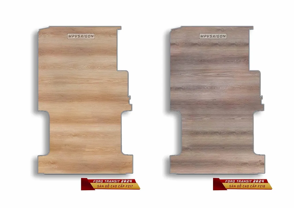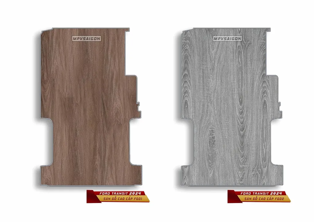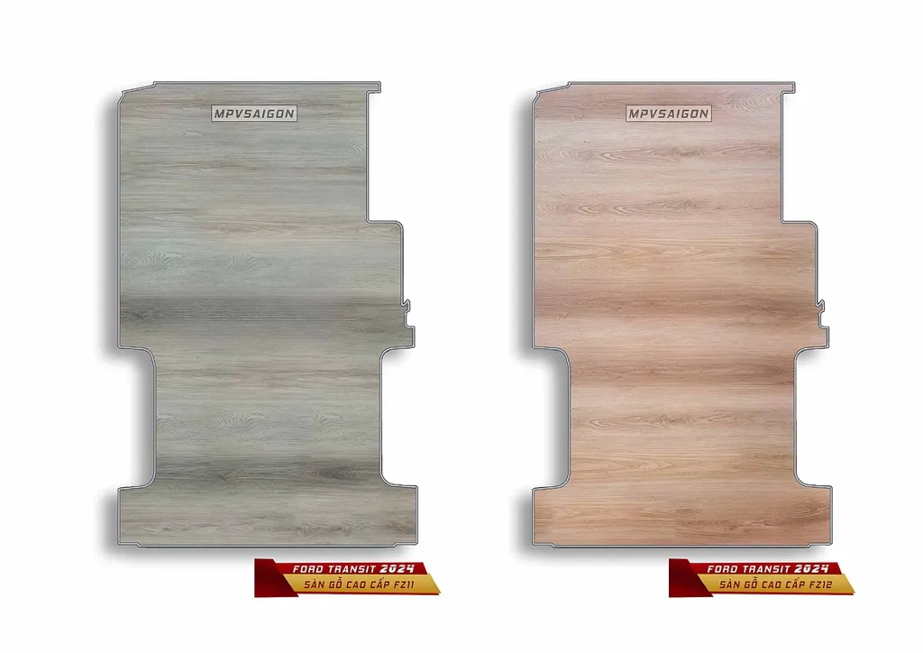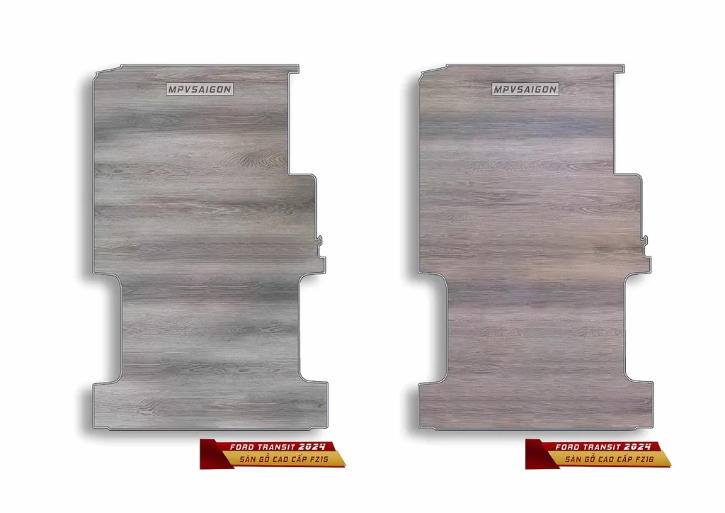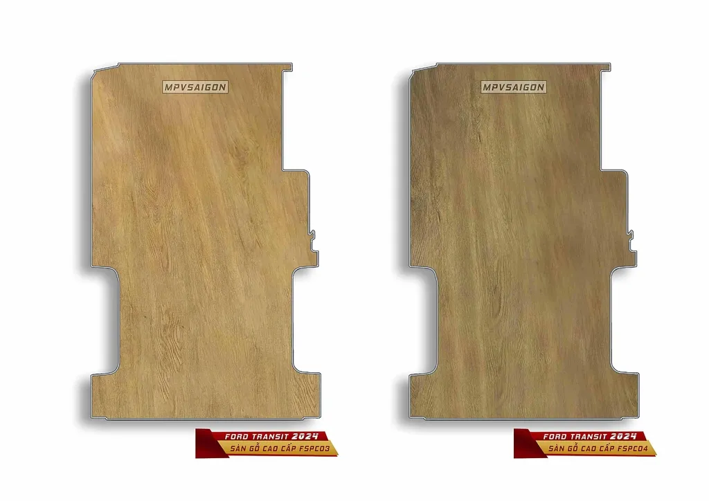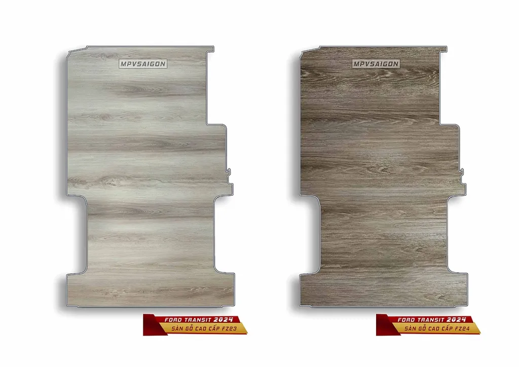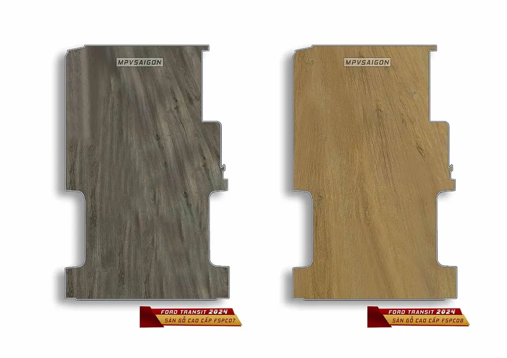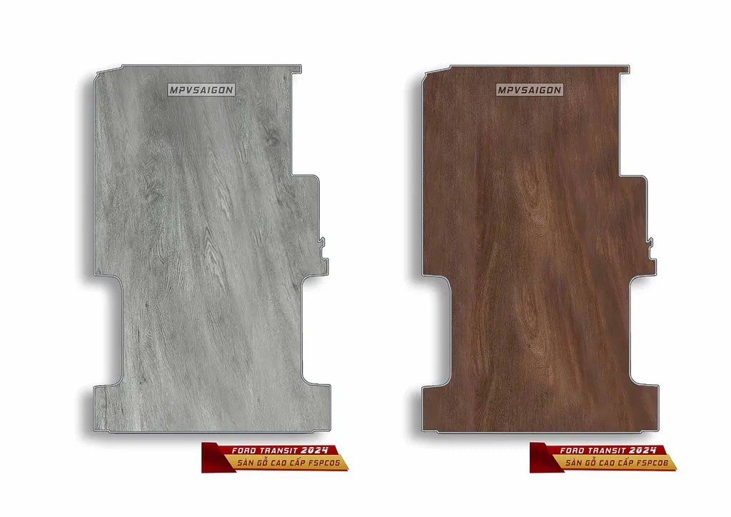 Lấy cảm hứng từ thiết kế hiện đại và yêu cầu vận hành thực tế, hai mẫu sàn FSPSCO5 (xám tro vân gỗ) và FSPSCO8 (nâu gỗ cổ điển) là dòng sàn gỗ cao cấp được MPVSAIGON thiết kế riêng cho khoang xe Ford Transit 2024