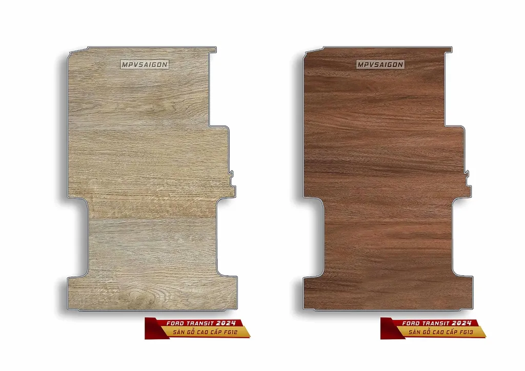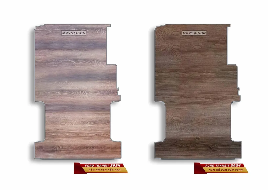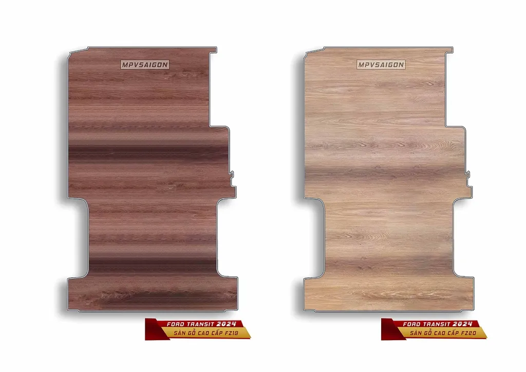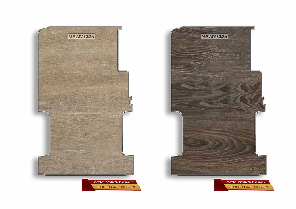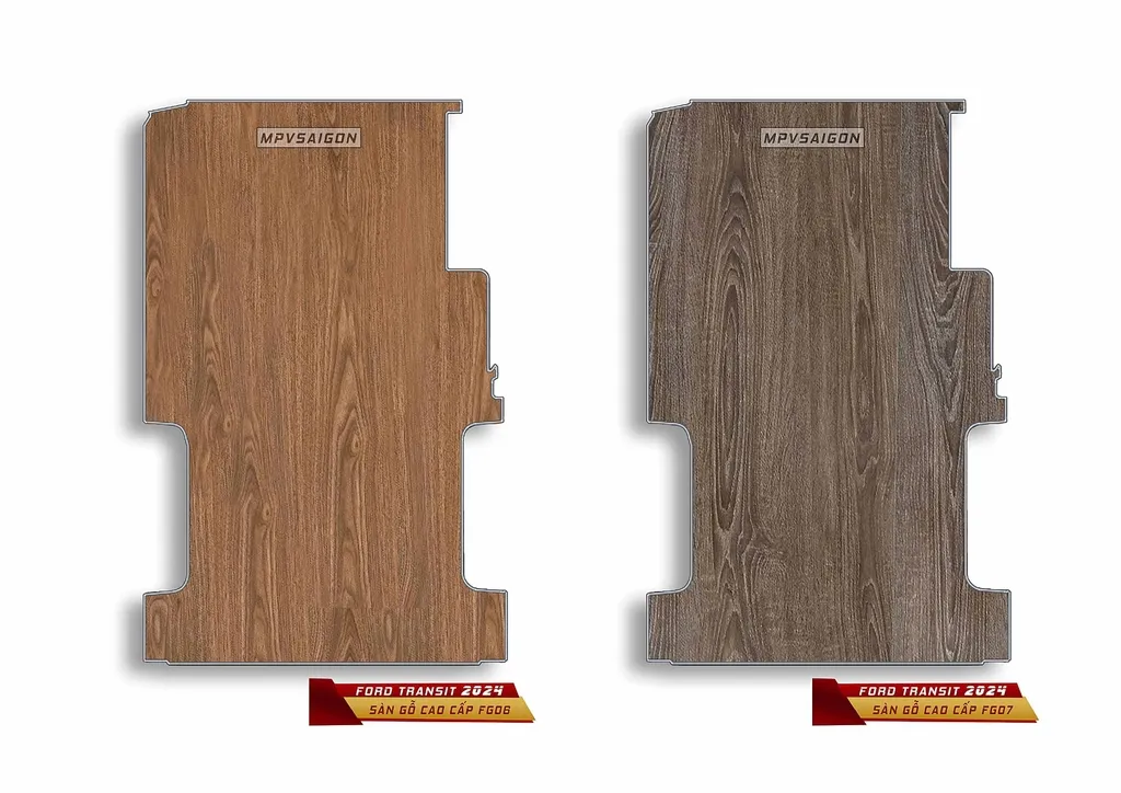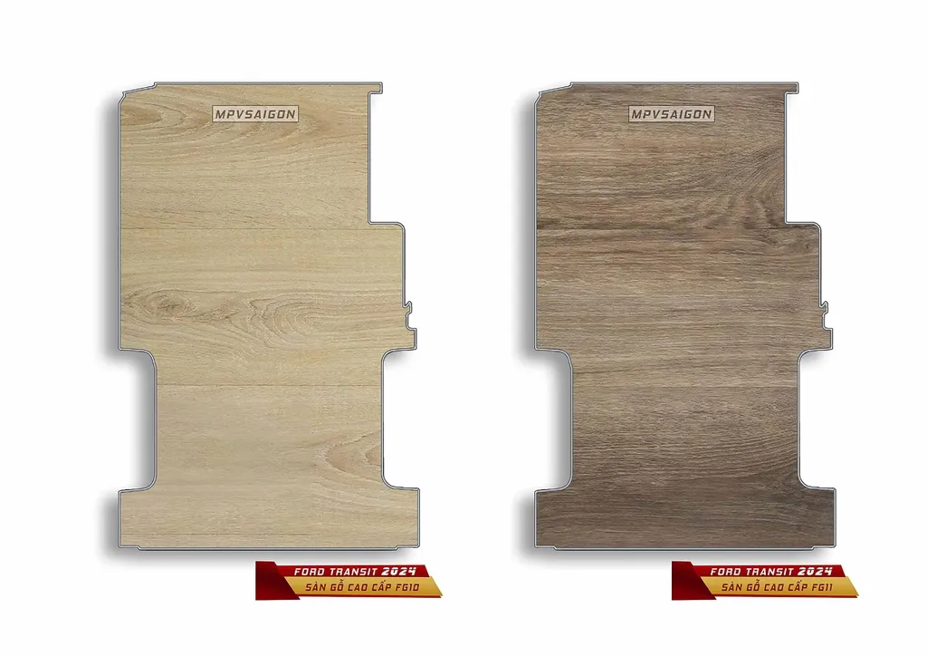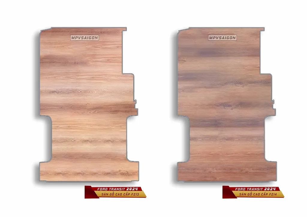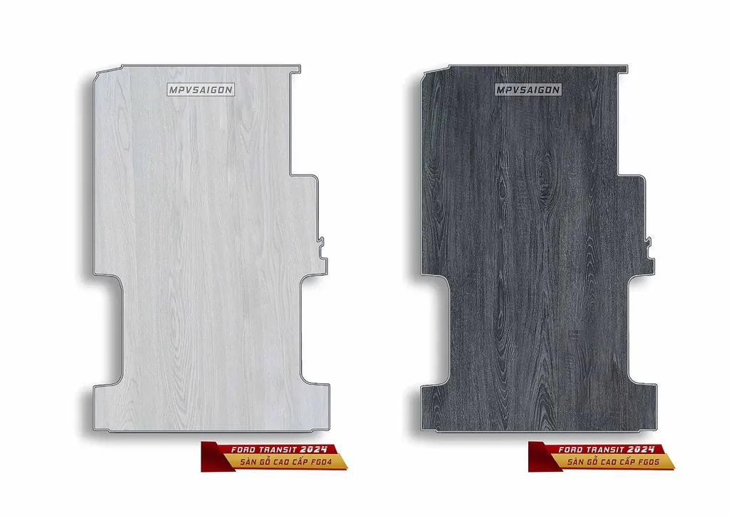 Lấy cảm hứng từ thiết kế hiện đại và yêu cầu vận hành thực tế, hai mẫu sàn FSPSCO5 (xám tro vân gỗ) và FSPSCO8 (nâu gỗ cổ điển) là dòng sàn gỗ cao cấp được MPVSAIGON thiết kế riêng cho khoang xe Ford Transit 2024