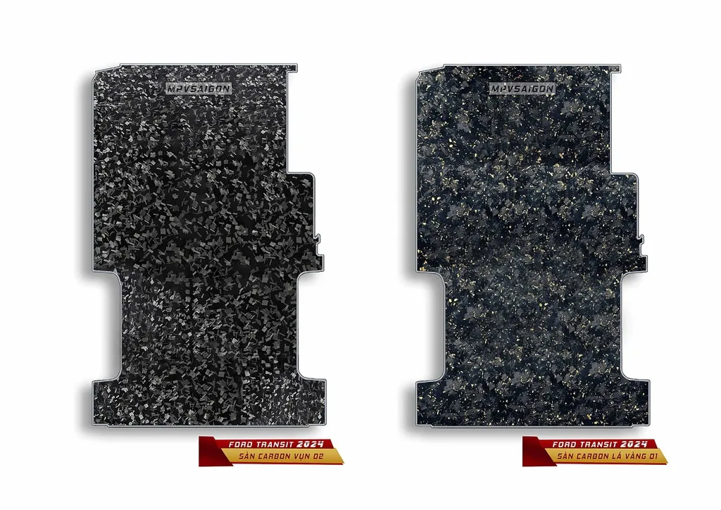Nếu bạn yêu thích sự độc đáo, thể thao và khác biệt, sàn carbon là điểm nhấn không thể bỏ qua. MPVSAIGON thường sử dụng loại sàn này để tạo điểm nhấn cá tính cho các bản độ Transit theo phong cách chuyên cơ mặt đất. Sở hữu ưu điểm nhẹ, bền, chịu lực tốt, sàn carbon thường được kết hợp với các vật liệu khác để tạo nên tổng thể nổi bật và ấn tượng trong từng chi tiết.