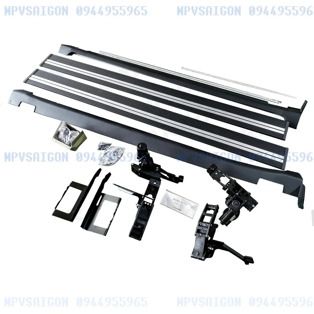 - Hệ thống bệ bước được sản xuất từ nhôm nguyên khối sơn tĩnh điện, kết hợp với ray trượt và motor chống nước chuẩn IP67, đảm bảo hiệu suất ổn định trong mọi điều kiện thời tiết.