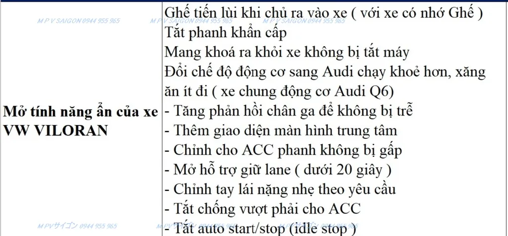 MPVSAIGON tự hào là đơn vị nâng cấp xe Viloran nhiều nhất hiện nay, và hiện tại MPV Saigon đã triển khai việc phục hồi là các tính năng zin của xe, cũng như nâng cấp và cập nhật sớm nhất tất cả các phụ kiện của dòng xe Viloran tại TP. HCM