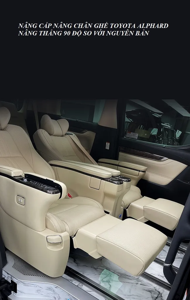 Nâng cấp đệm chân tự động Toyota Alphard giúp quý khách có thể điều chỉnh đệm chân linh hoạt hơn, ngồi thoải mái hơn rất nhiều so với nguyên bản.