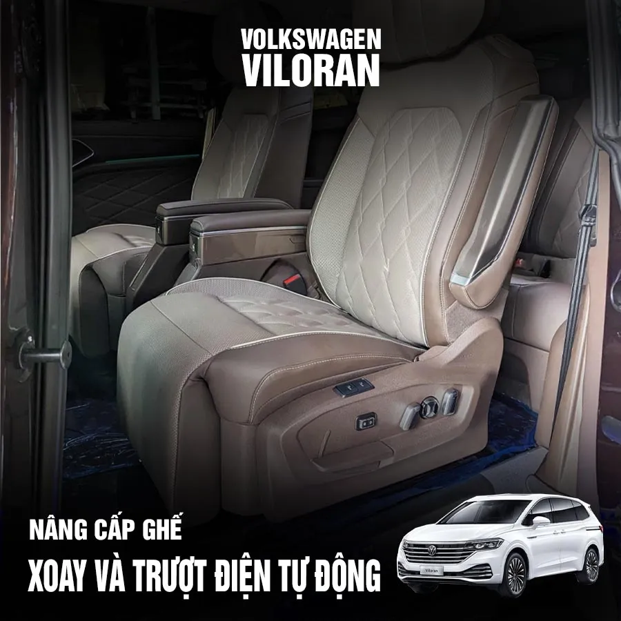Nâng cấp ghế trượt điện và xoay 180 độ cho xe Volkswagen Viloran là một giải pháp hiện đại, mang lại sự tiện nghi và linh hoạt cho không gian nội thất. Với tính năng này, hành khách có thể dễ dàng điều chỉnh vị trí ngồi cũng như xoay ghế để tạo ra không gian giao tiếp thoải mái hơn trong xe.