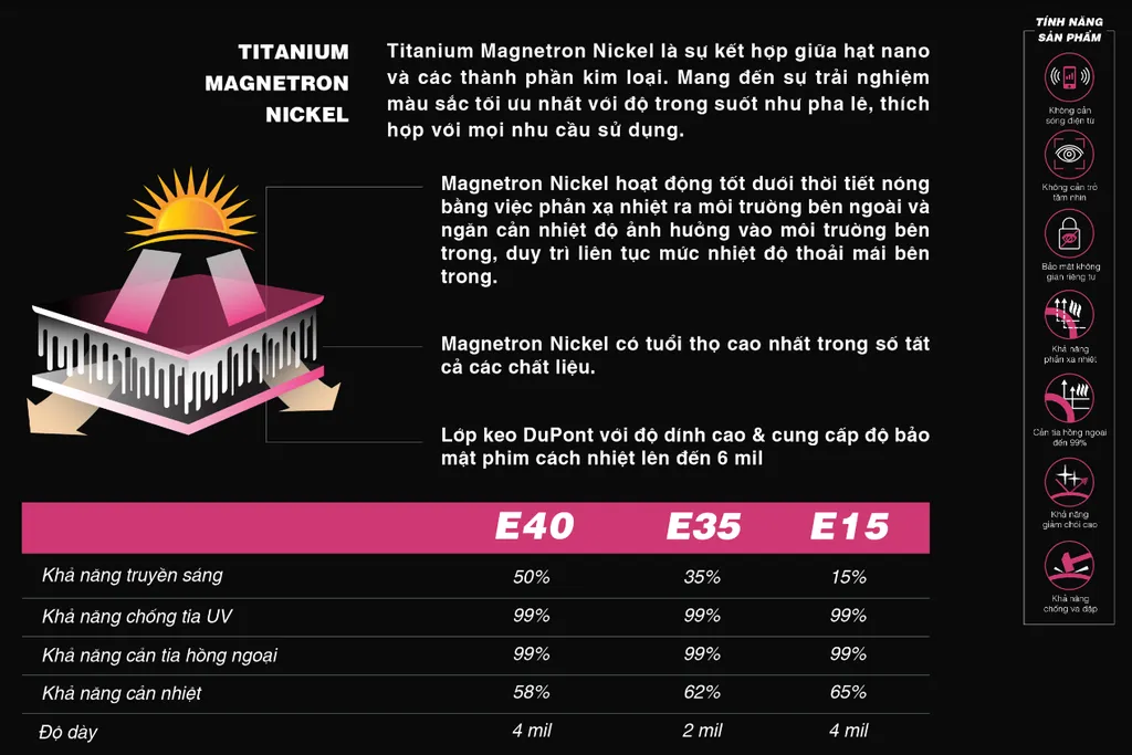 • Loại bỏ 99% tia tử ngoại và tia hồng ngoại, giúp bảo vệ da, mắt và ngăn ngừa lão hóa.