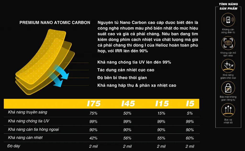 Phim cách nhiệt Helioz là thương hiệu đến từ Malaysia, được sản xuất dành riêng cho thị trường Đông Nam Á. Phim cách nhiệt Helioz có nhiều ưu điểm vượt trội như: