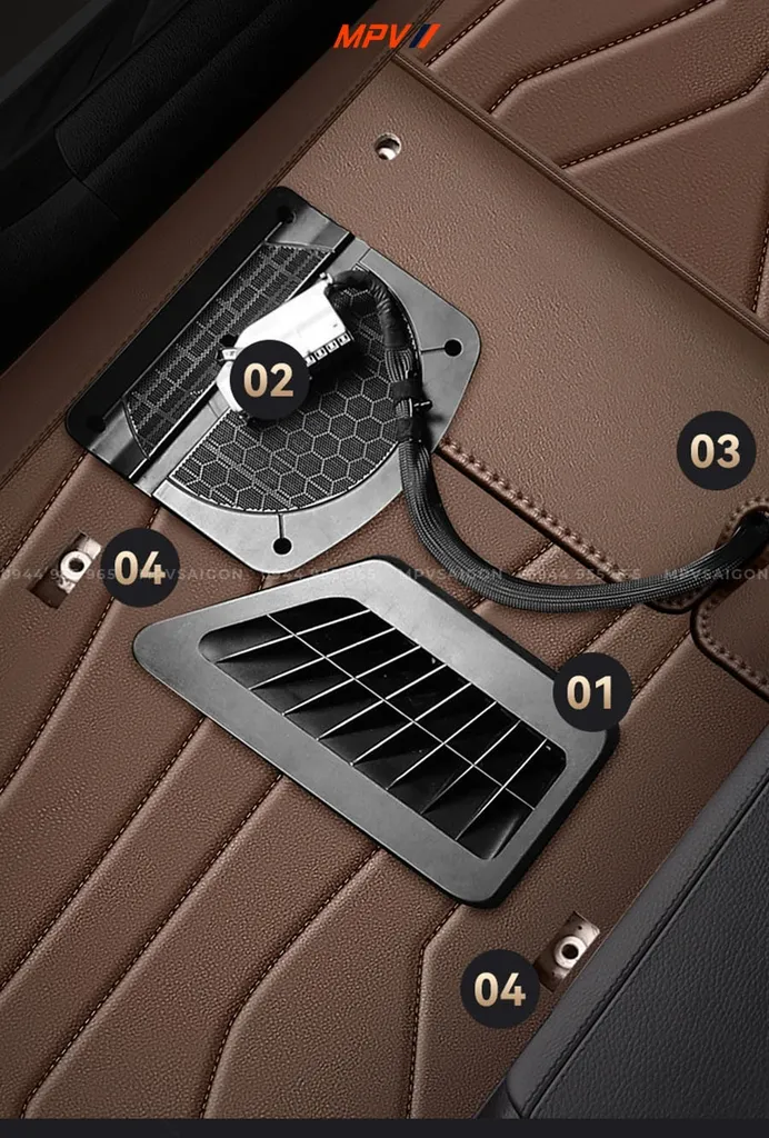 Volkswagen Golf 8 được trang bị hệ thống cửa gió làm mát khu vực chân cho hàng ghế sau, đây là chi tiết mà nhiều loại thảm universal thường bỏ qua hoặc khoét không đúng vị trí. Sàn da microfiber tại MPVSAIGON được tạo hình dựa trên bản đo chính xác của từng cửa gió, đảm bảo các khe gió không bị che kín hoặc thu hẹp diện tích.