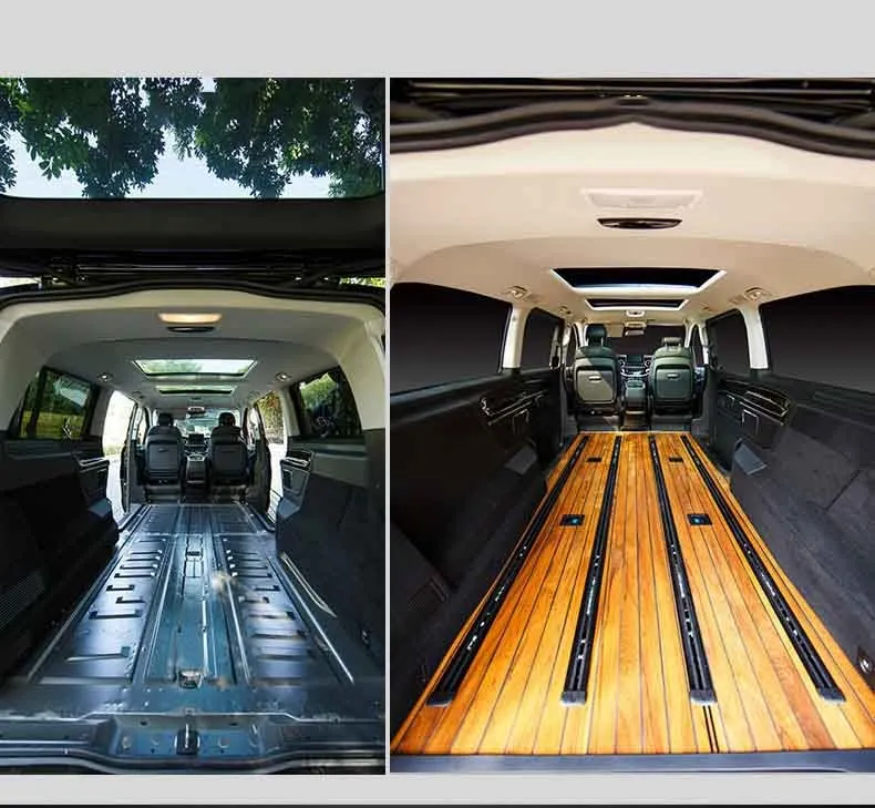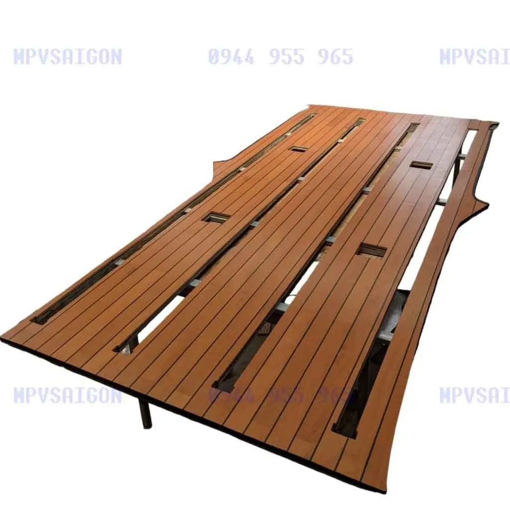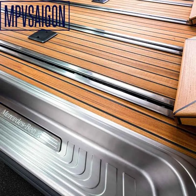 Để làm MPVSaigon khác so với các xưởng độ riêng lẻ ngoài thị trường, chúng tôi quyết định chọn loại sàn gỗ cây phong cách du thuyền để làm sàn cho chiếc V250 này. Các đường chỉ đen giống y như du thuyền, hoặc có thể thay thế bằng các đường chỉ màu bạc, hay màu xi vàng rất thời thượng, mỗi loại sẽ có một chi phí khác nhau, và độ khó khi gia công cũng khác nhau khá nhiều.