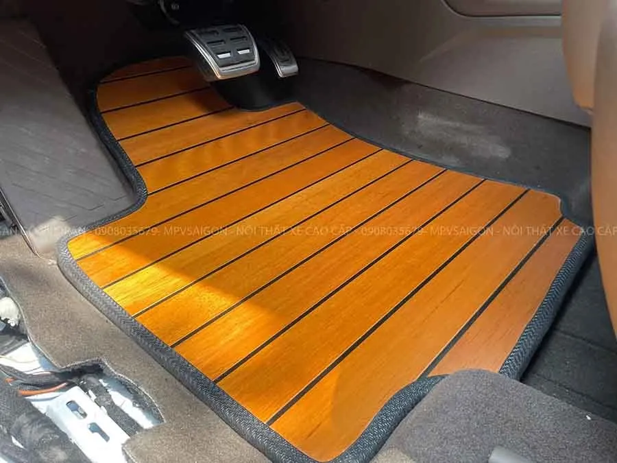 Sàn gỗ tự nhiên cho dòng xe Volkswagen Viloran được thiết kế riêng biệt, vừa vặn với từng đường viền và khớp sàn xe. Chất liệu được tuyển chọn từ các loại gỗ quý như teak, walnut hoặc sồi Mỹ – mang đến vẻ đẹp tự nhiên và tinh tế. So với sàn nỉ hay sàn nhựa truyền thống, sàn gỗ tự nhiên mang lại cảm giác ấm áp, sang trọng và dễ vệ sinh. Ngoài ra, vật liệu này còn giúp tăng giá trị nội thất xe và thể hiện cá tính của chủ nhân.