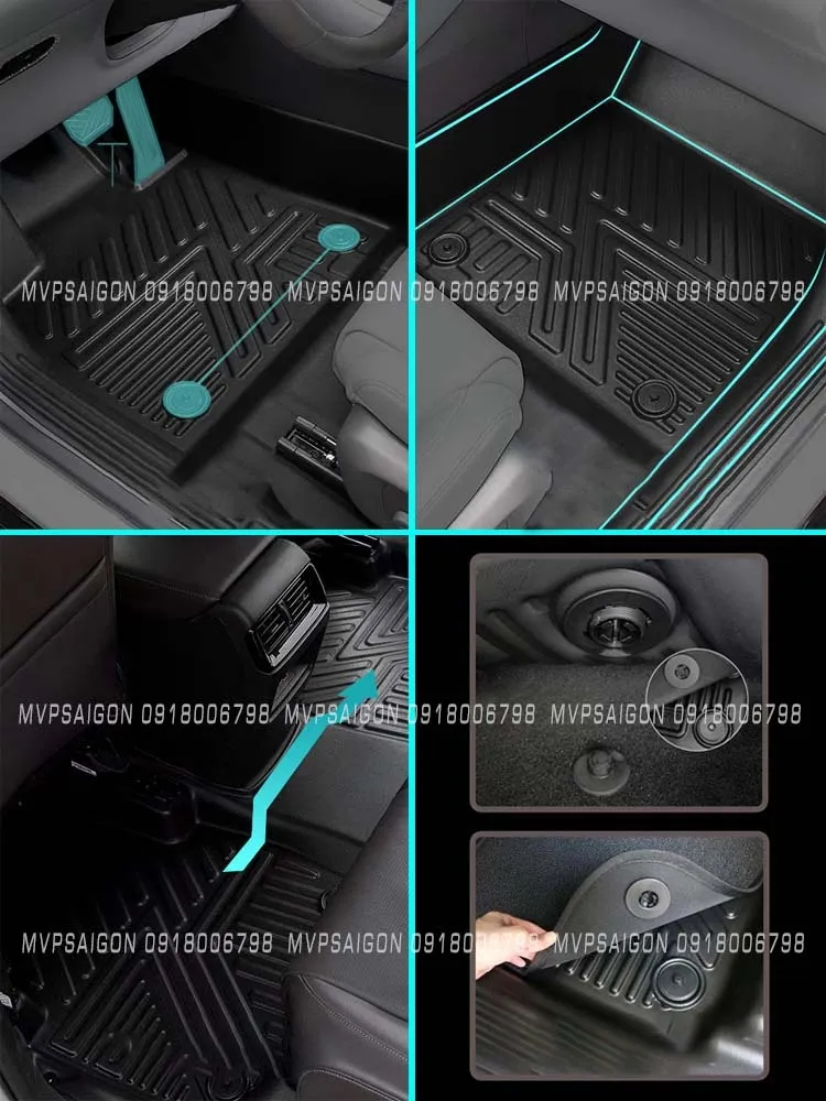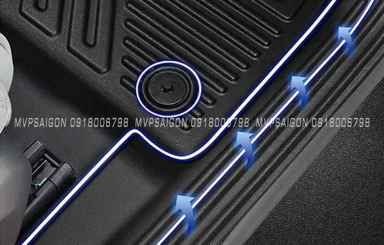Bề mặt sàn nhựa TPE được dập nổi hoa văn chống trượt, viền chỉ khâu thủ công giúp chống bong mép, đồng thời tạo điểm nhấn tinh tế cho nội thất xe. Chất liệu được xử lý chống tia UV và bạc màu, đảm bảo tuổi thọ trên 5 năm sử dụng thực tế.